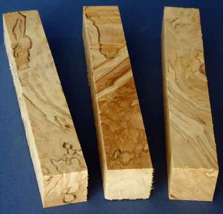 3er Set Holzpens, Birkenholz wild und gestockt (Set Nr. 203)