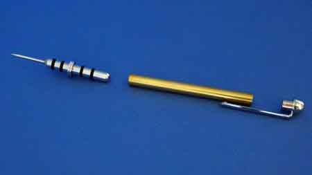 Bild zeigt fertige Stechahle Chrom Die fixierung von der Stechahle in der Hülse wird durch die 2 O-Ringe hergestellt