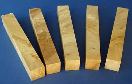 5er Set Holzpens, Birkenholz wild (Nr.202), Kantel 130mm x 19mm x 19mm. Flächen gehobelt und gefräst.